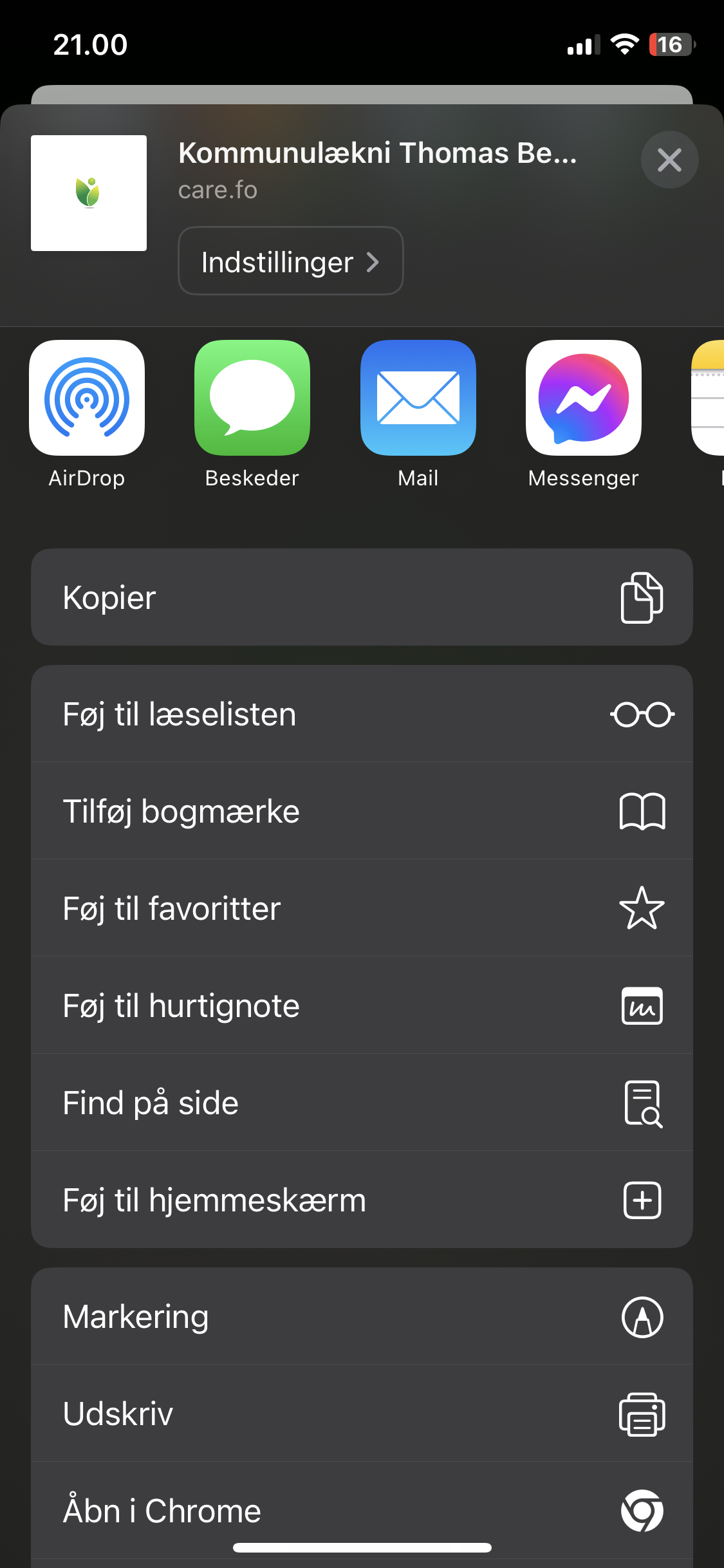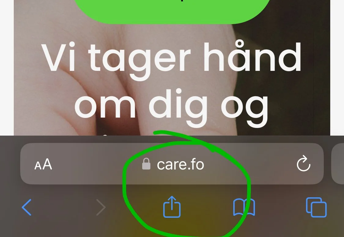 Besøg www.care.fo i din mobiltelefons internetbrowser og tryk på “share”-ikonet.